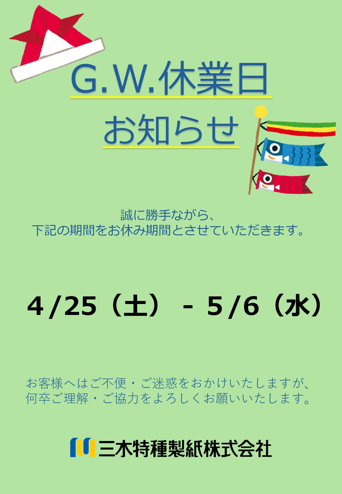 ■休業期間 2026年4月25日(土)〜 2026年5月6日(水)